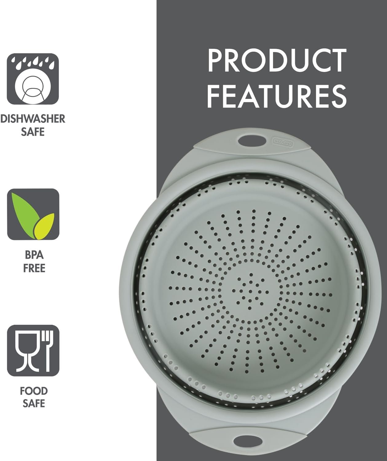 After use, cleaning is quick and uncomplicated. Thanks to its silicone material, food residue doesn’t cling to the surface. This colander is dishwasher safe, but hand washing with mild soap and water also gets it clean in minutes.