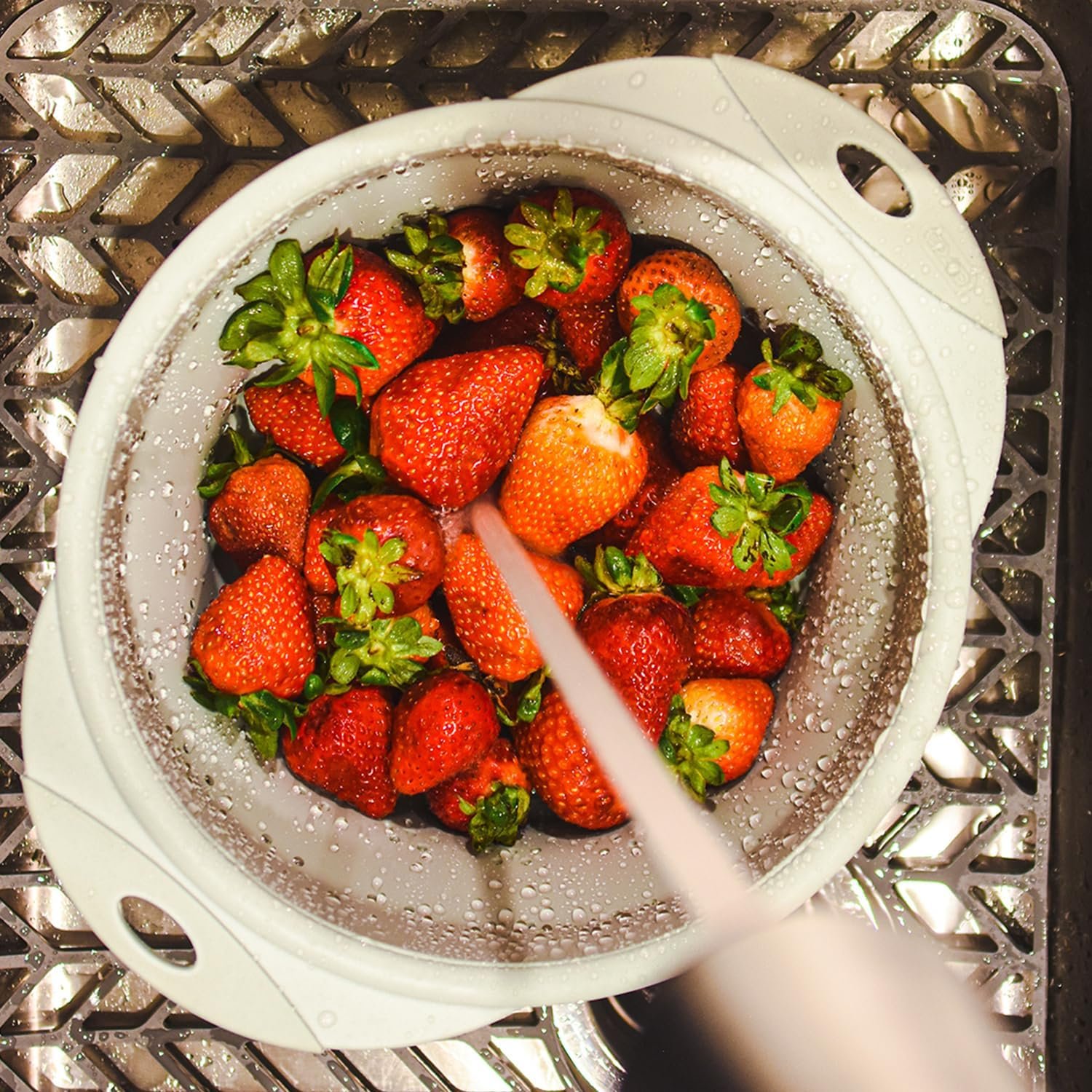 - Grip: The rim offers a comfortable place to hold, making it easy to shake or maneuver while draining.