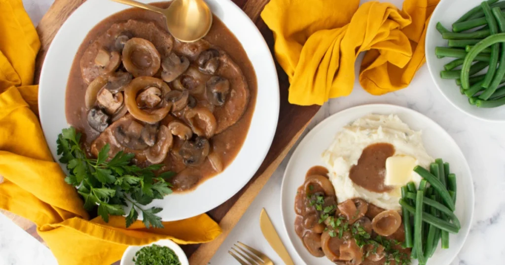 Toss in 8 oz of sliced fresh mushrooms along with the onions for an earthy, umami-packed twist. They soften perfectly during slow cooking and add amazing texture to the gravy.