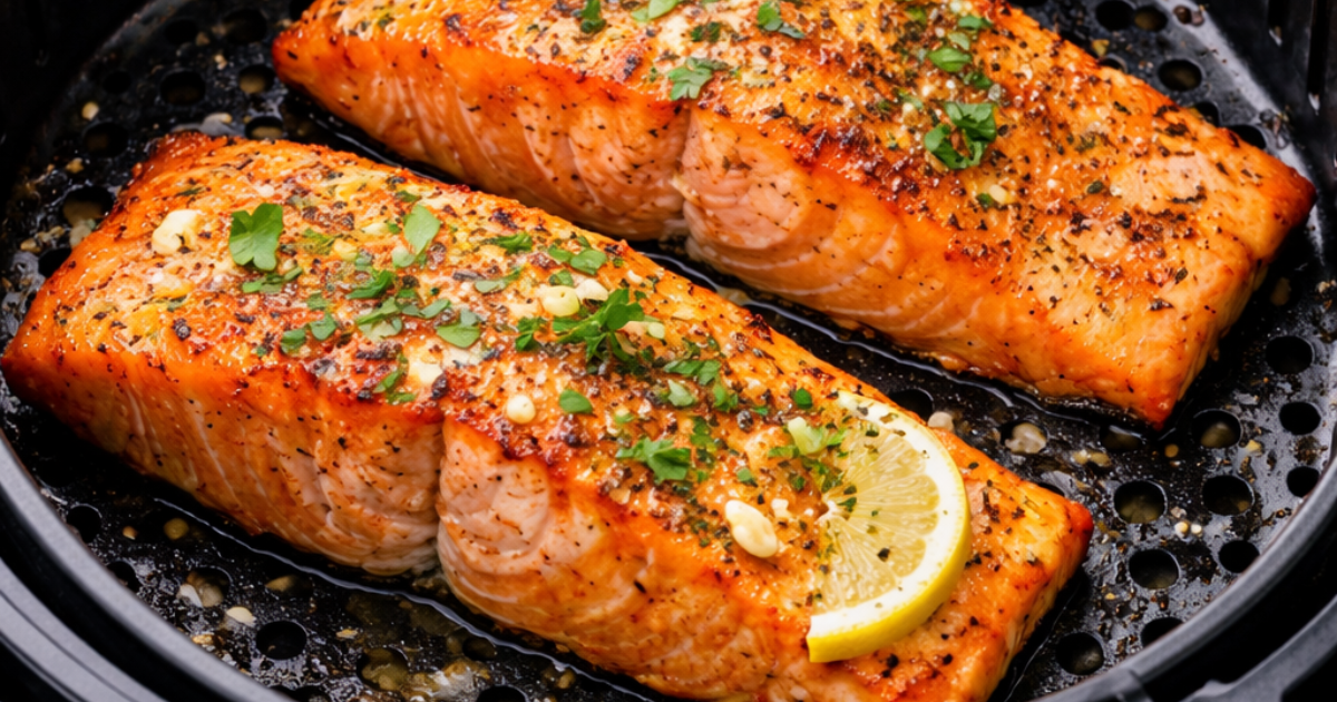 - Step 6 — Rest, Finish & Serve: Remove the salmon from the basket and let it rest on a plate for 2 minutes. This allows the juices to redistribute, keeping the inside moist. Squeeze fresh lemon juice over the top, scatter fresh herbs if using, and serve immediately.